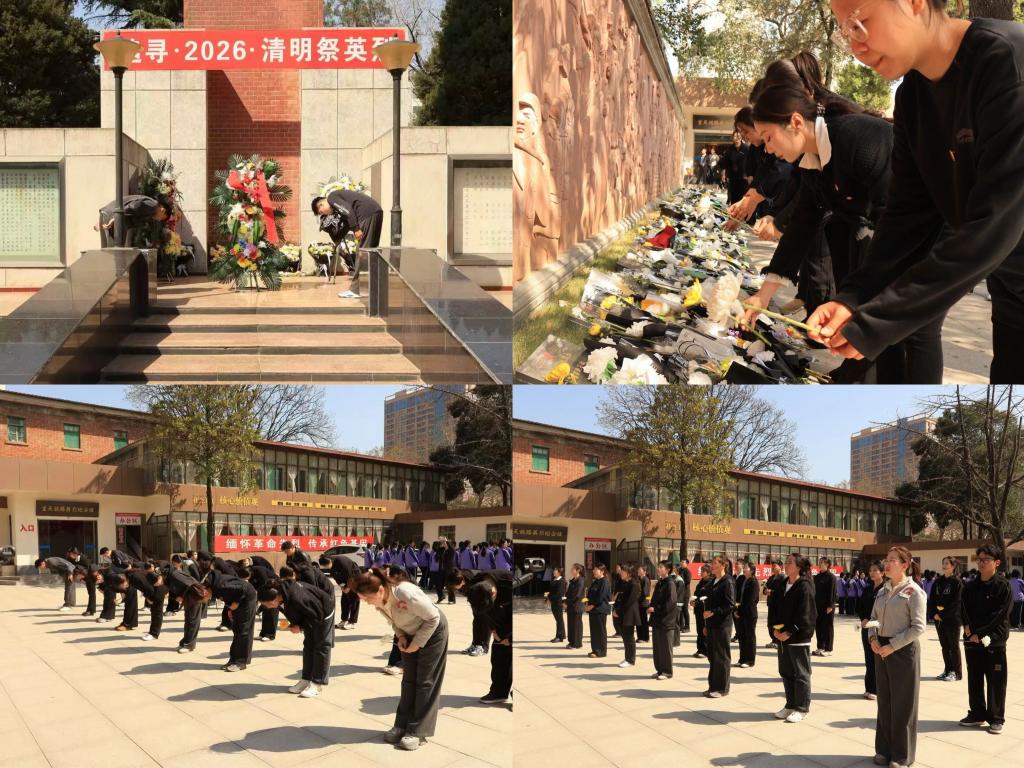 全体师生肃立默哀,向为国家建设而英勇献身的革命先烈致以最深切的缅怀。师生代表缓步上前,向纪念碑敬献花篮并整理缎带,全体人员行三鞠躬礼,在庄重仪式中表达对英烈的崇高敬意与深切追思。